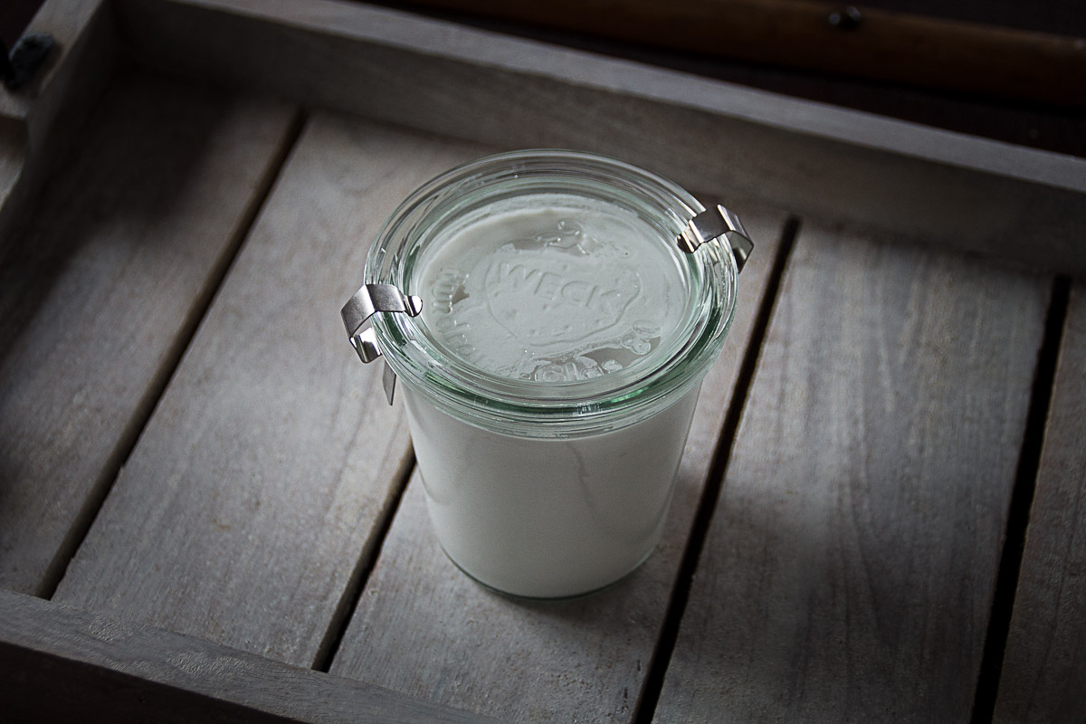 - Joghurtferment oder 100 bis 120 g Vollmich- oder Kokosjoghurt